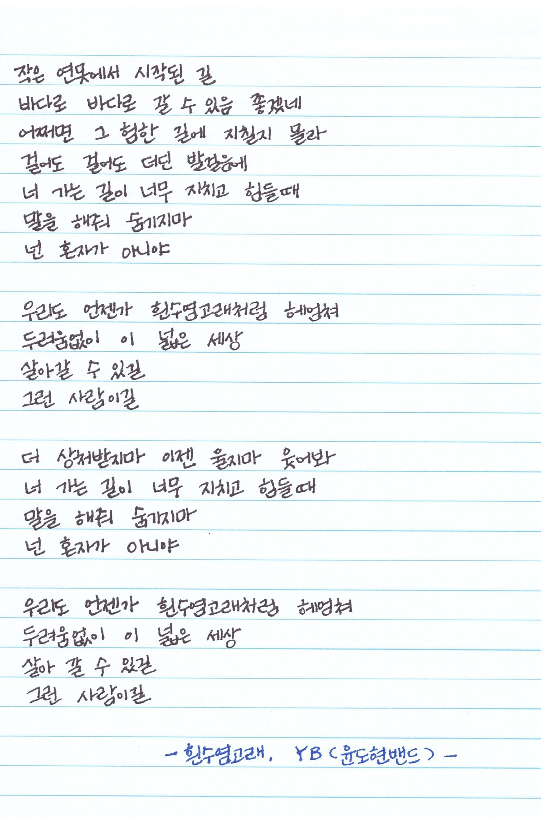 2011년에 발매된 YB의 EP 흰수염고래의 타이틀곡이다.